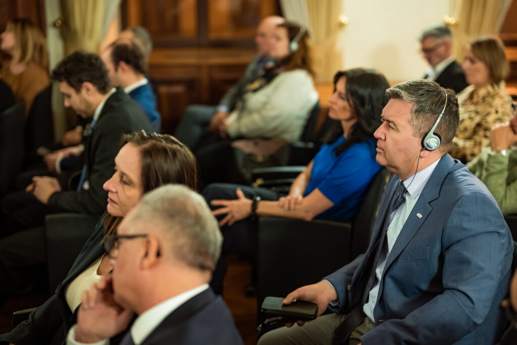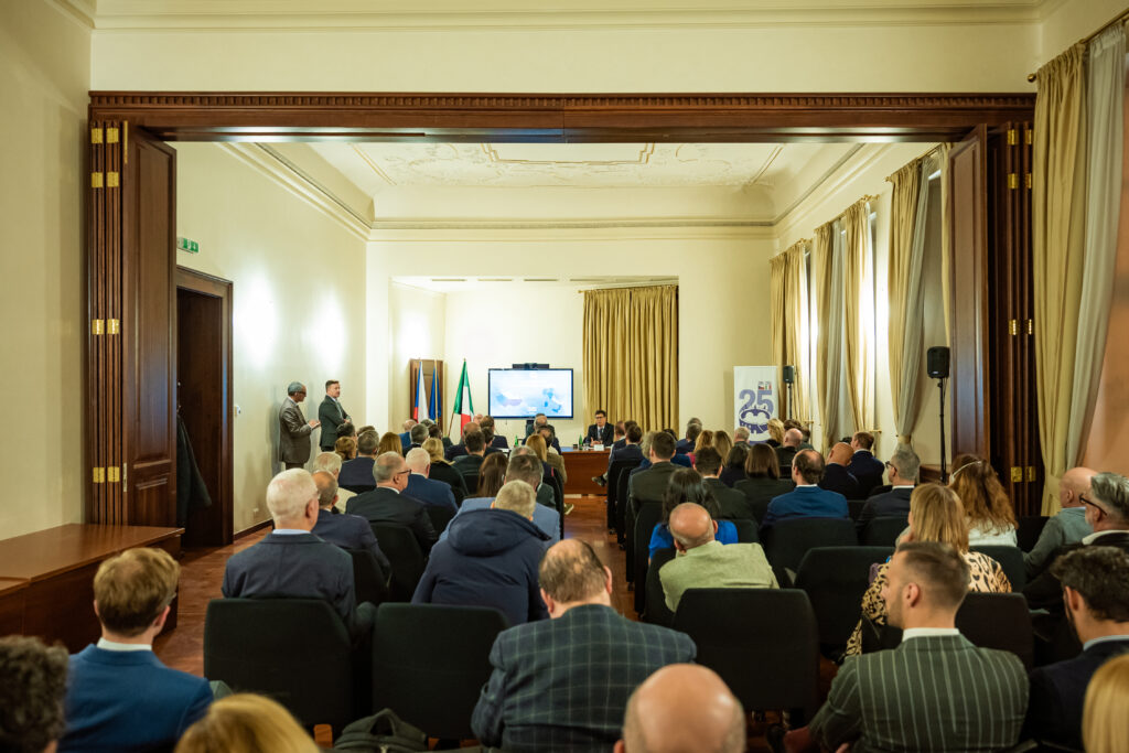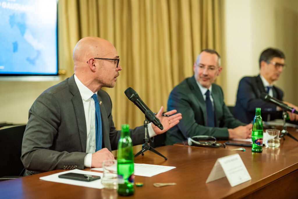 „Velmi vám děkuji za tuto příležitost se s vámi setkat několik týdnů po mém příjezdu do Prahy,“ řekl velvyslanec Gaudiano, který ocenil velkou dynamiku obchodní komory. „Věřím, že Itálie a Česká republika jsou dva členské státy, které mají mnoho trumfů pro úzkou spolupráci,“ řekl nový velvyslanec, který zdůraznil některé společné body mezi Itálií a Českou republikou, například velký význam průmyslu pro obě země. Podle něj Česká republika a Itálie mají mnoho společných názorů v současné unijní debatě o posílení konkurenceschopnosti. Mezi slibné ekonomické sektory označil obranný průmysl, energetiku, dopravní infrastrukturu a kosmický průmysl.